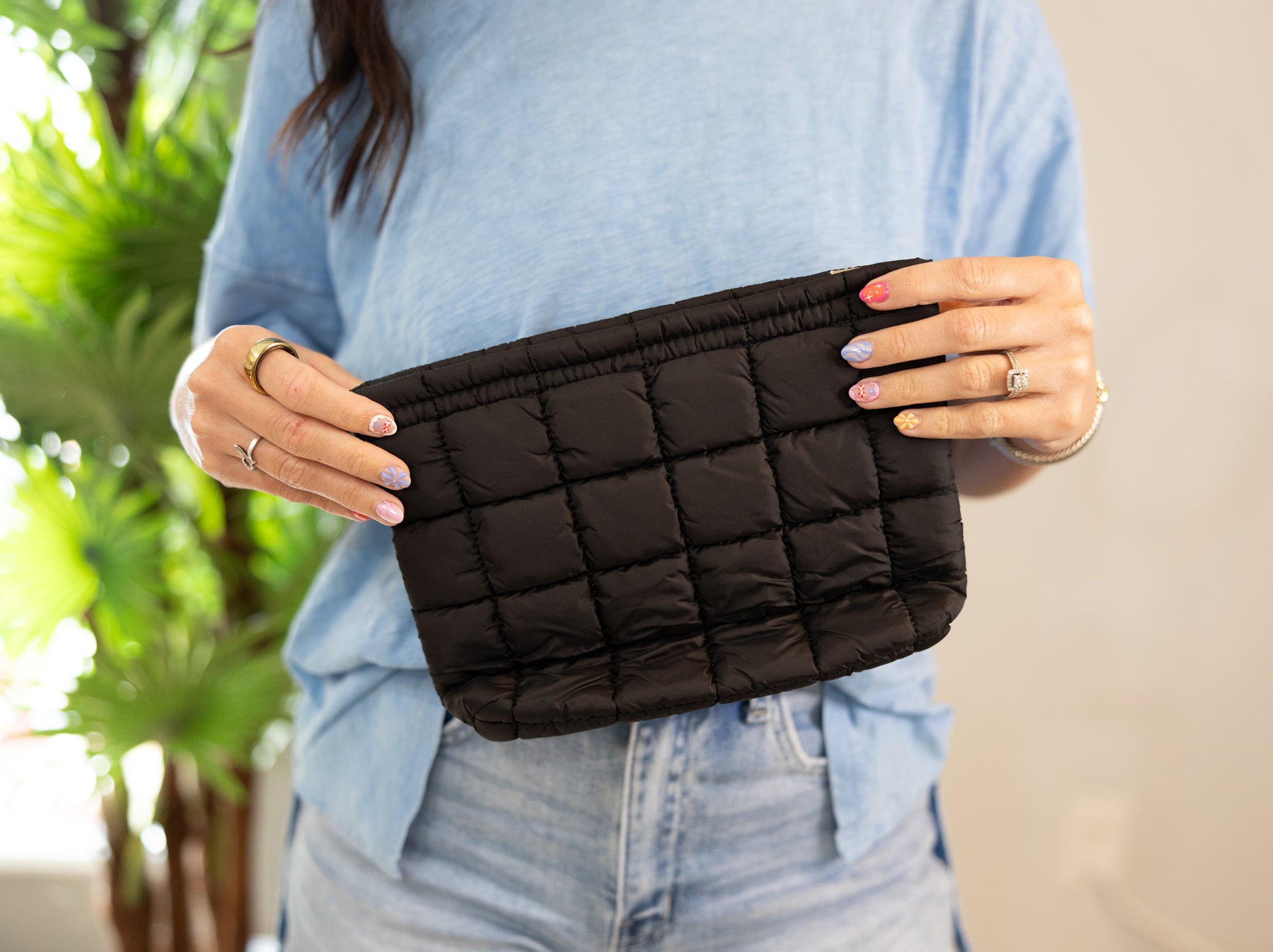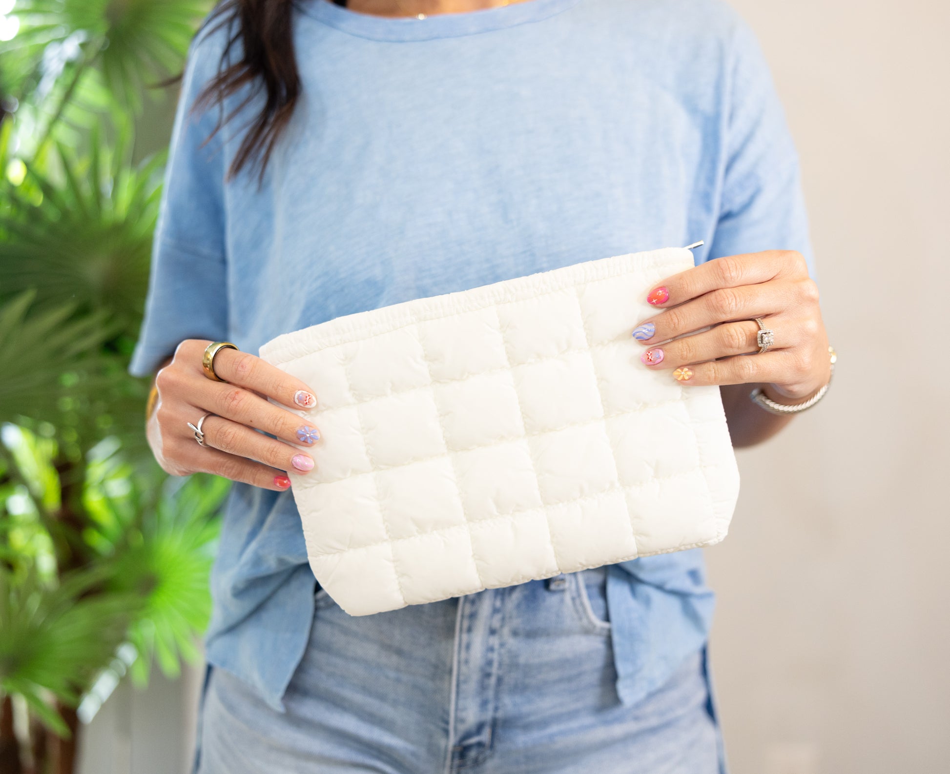 Perfect for storing makeup, toiletries, or other small items, this versatile pouch doubles as a fashionable clutch!